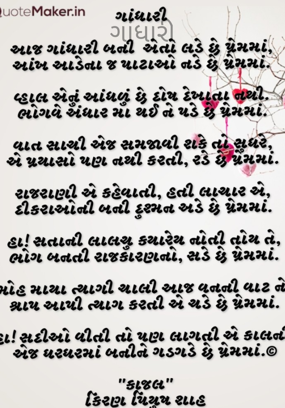 આજ ગાંધારી બની એતો લડે છે પ્રેમમાં,