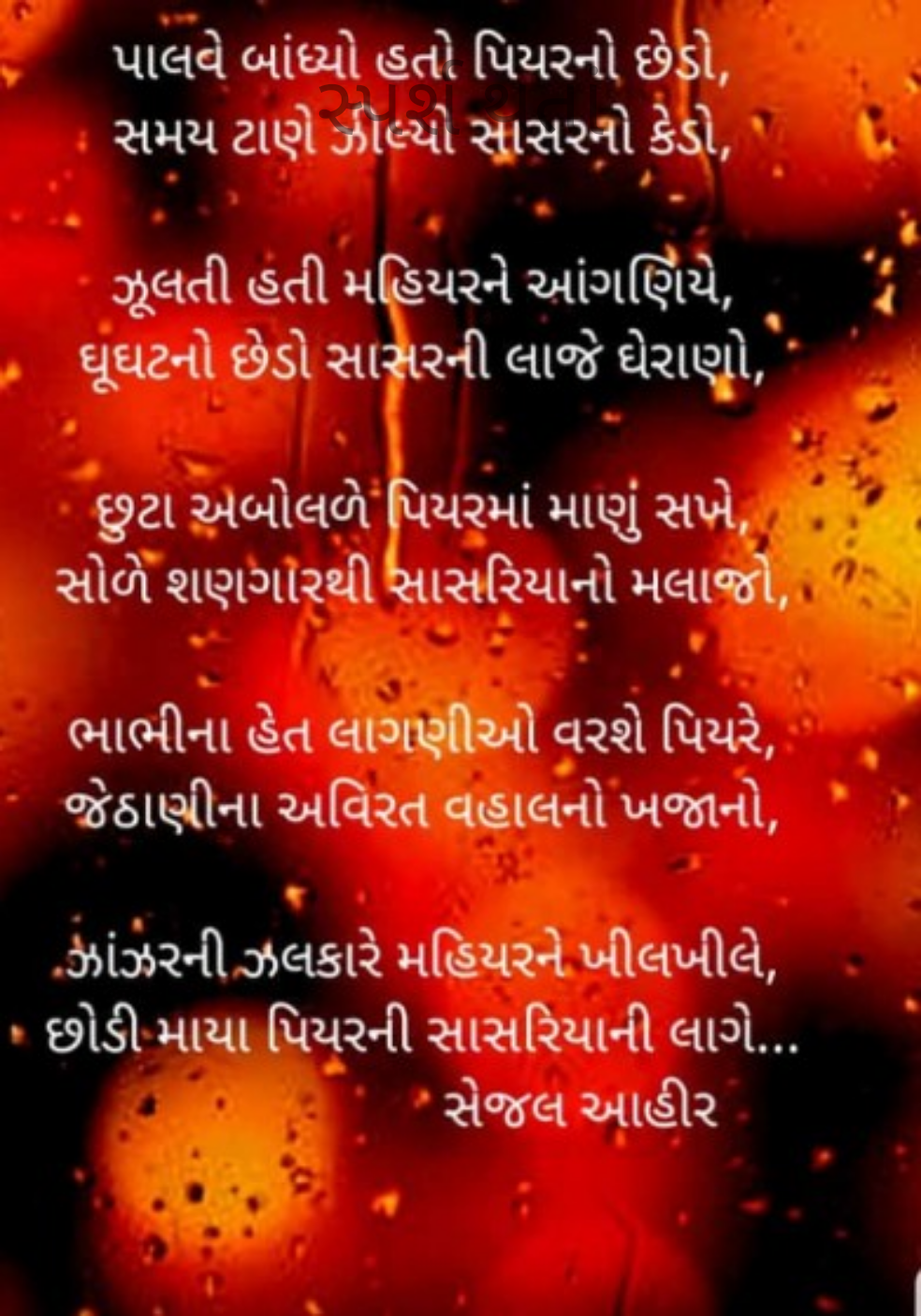 સ્પર્શ થતાં સંવેદના રોમ રોમમાં ઉમટી,