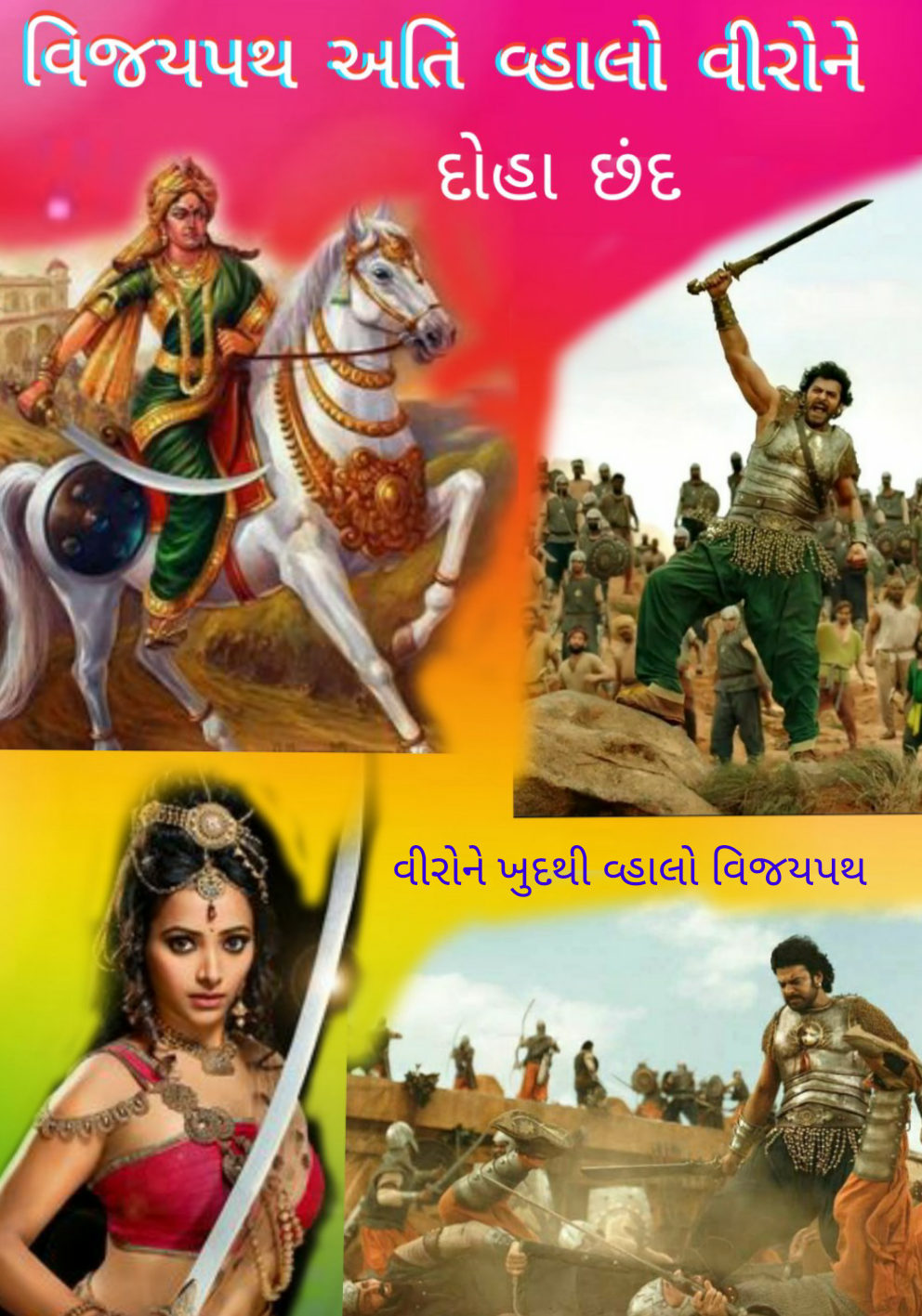 " વિજયપથ ખુદથી પણ વ્હાલો વીરોને. વિજય મળે હરખ ઝાઝો હોય