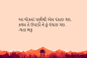 આ લોકમાં પછીથી એમ પંકાઇ ગઇ, કલમ તે ઉપાડી ને હું વંચાઇ ગઇ. -લતા ભટ્ટ