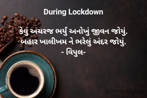 During Lockdown કેવું અચરજ ભર્યું અનોખું જીવન જોયું. બહાર ખાલીખમ ને ભરેલું અંદર જોયું. - વિપુલ-