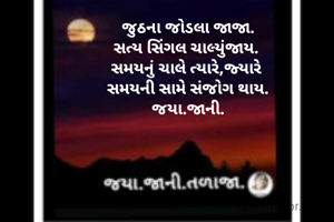 જુઠના જોડલા જાજા. સત્ય સિંગલ ચાલ્યુંજાય. સમયનું ચાલે ત્યારે,જ્યારે સમયની સામે સંજોગ થાય. જયા.જાની.