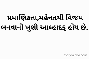 પ્રમાણિકતા,મહેનતથી વિજય બનવાની ખુશી આલ્હાદક્ હોય છે.