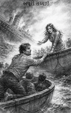 ત્યાં, વર્ષોથી કાંધે કાંધા મિલાવીને ઊભેલા દેવેન્દ્ર અને વંદના. તેમની આંખોમાં ભયના પડછાયા હતા, છતાં પ્રેમની અમીટ જ્યોત હતી. દેવેન્દ્રના હાથમાં વંદનાનો હાથ હતો. તેમની એકમાત્ર પુત્રી પ્રીતિ ઘરે, દાદીના આશરે રાહ જોઈ રહી હતી. અને ત્યાં જ, કોઈની કલ્પના બહારની ઘટના બની ગઈ. દેવેન્દ્ર અચાનક આગળ વધ્યા અને લાઇફબોટમાં કૂદી પડ્યા. વંદનાને ડેક પર જ પાછળ છોડી દીધી.