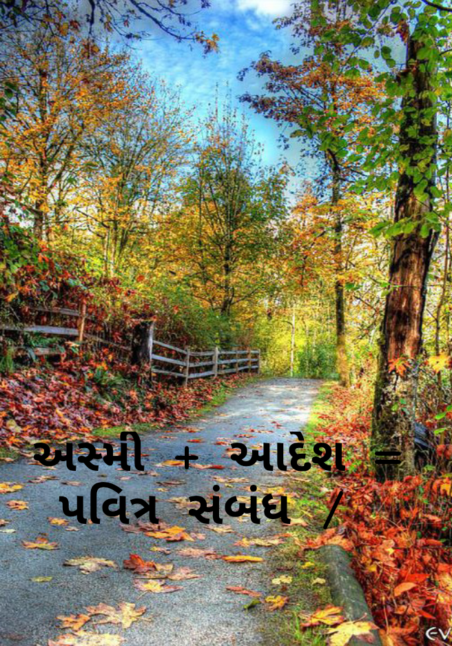 કોઈ ક્લેરિફિકેશન નથી જરૂર નથી અસ્મી. પ્રેમનું આ રૂપ શાશ્વત અને ચિરંતન છે. હું જયારે પણ આવીશ ત્યારે તને મળ્યા વગર નહિ જાઉ. તું મારી એક માત્ર આત્મીય સબંધી દોસ્ત સખી કે જે કઈ માને તે છે. હું તને કાયમ માટે યાદ કરતો રહીશ એક અખંડ સૌભાગ્યવતીના પવિત્ર સ્વરૂપમાં. પછી તેને મારો હાથ તેના હાથમાં લીધો અને કહ્યું આદેશ, મારો અને તારો સંબંધ પવિત્ર છે અને પવિત્ર જ રહેશે.