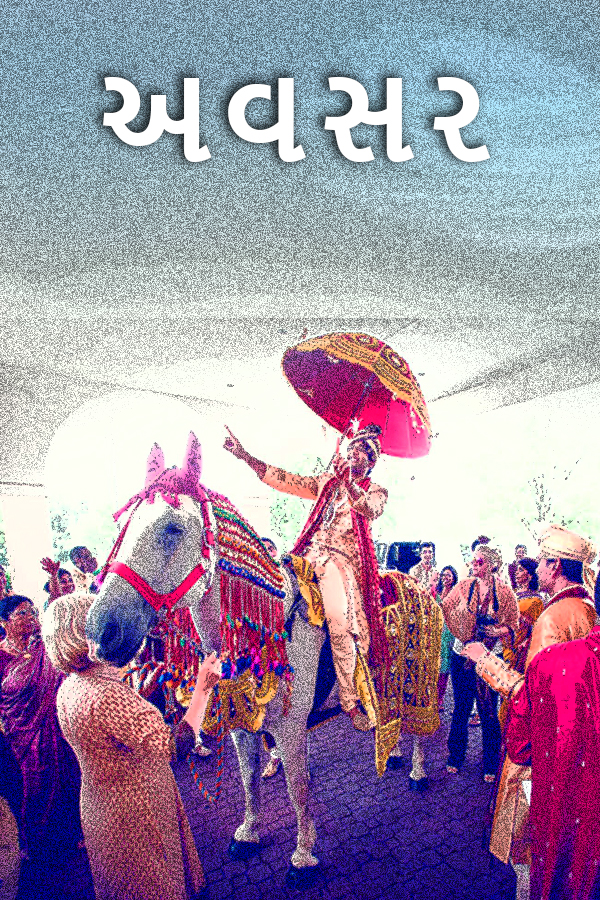 સુરેખા અને સુરેશ જાણે દીકરાના અવસરની નદીને કિનારે છેટાં ઊભાં હતાં, સૂકી રેતીમાં સાવ કોરાધાકડ, સુરેશથી એક ડગલું ચલાતું નથી, સુરેખા સિલ્કની બોર્ડરવાળી સાડી અને હીરાના કંકણ, મંગળસૂત્ર ને બુટ્ટી પહેરી વરઘોડામાં જોડાવાની ઈચ્છા કરતી અંતરિયાળ અવસ્થામાં સુરેશનો હાથ ઝાલી ઉભી રહી ગઈ.