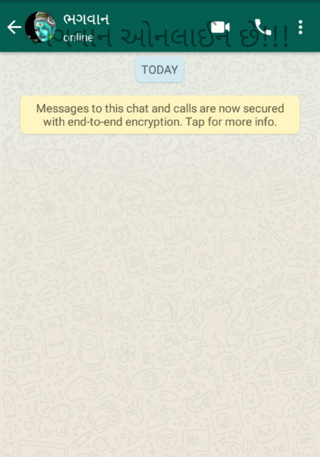 મોબાઇલ લઇને મેઘાવી દોડી ગઈ અને પછી વોટ્માંસ એપ્પમાં ભગવાનને ઓનલાઈન જોઈ હર્ષાશ્રુ સાથે વોઇસ મેસેજ કર્યો "થેન્ક્યુ ભગવાન" અને ખુશીથી મનમાં બોલી, ખરેખર ભગવાન ઓનલાઈન છે !