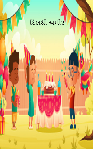 રાજુએ જોયું તો રૂમની દીવાલ પર મોટા અક્ષરે “હેપ્પી બર્થ ડે ટુ યુ ડીઅર ફ્રેન્ડ રાજુ.” એમ લખ્યું હતું. ત્યાં ટેબલ પર એક મોટી કેક મૂકી હતી. જેના પર તેનું નામ લખેલું હતું.