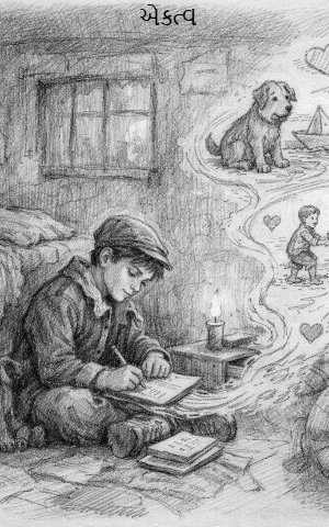 વરુણ દિવસભર ગલીઓમાં ભટકતો. ક્યાંકથી રોટલીનો ટુકડો મળે તો ખાઈ લે. ક્યારેક ભૂખે મરતો, પણ ફરી ઊભો થઈ જતો. રાત્રે જ્યારે થાકીને ઓરડીમાં પાછો ફરે, ત્યારે એક જ વસ્તુ તેની રાહ જોતી વિક્રમનો પત્ર.