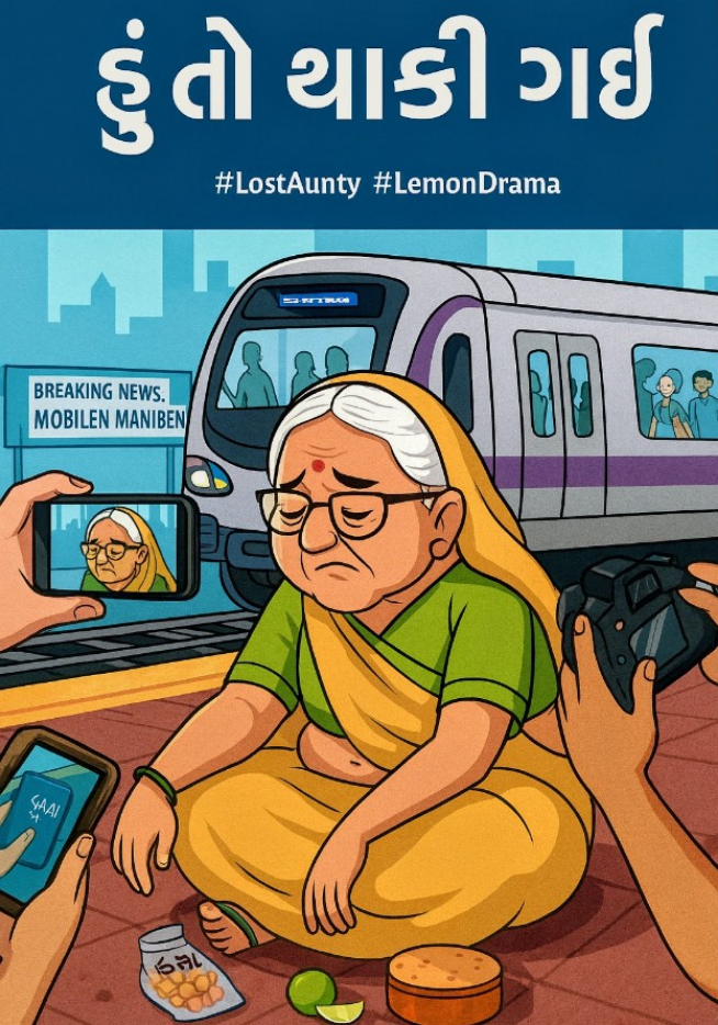 પણ એ સવારે ગજબ થયું . પૈસા ની પોટલી લેતા, મોબાઇલ સોફાનાં ગોદડાં નીચે રહી ગયો અને મણિબહેન મેટ્રોમાં ભીડનાં ઘક્કે ચડી ગઈ. કેડે પૈસાની પોટલી, હાથ માં લીંબુની ચીરી, ચણા જોરગરમ, ખારી સીંગ અને ખાખરાનો ડબ્બો.