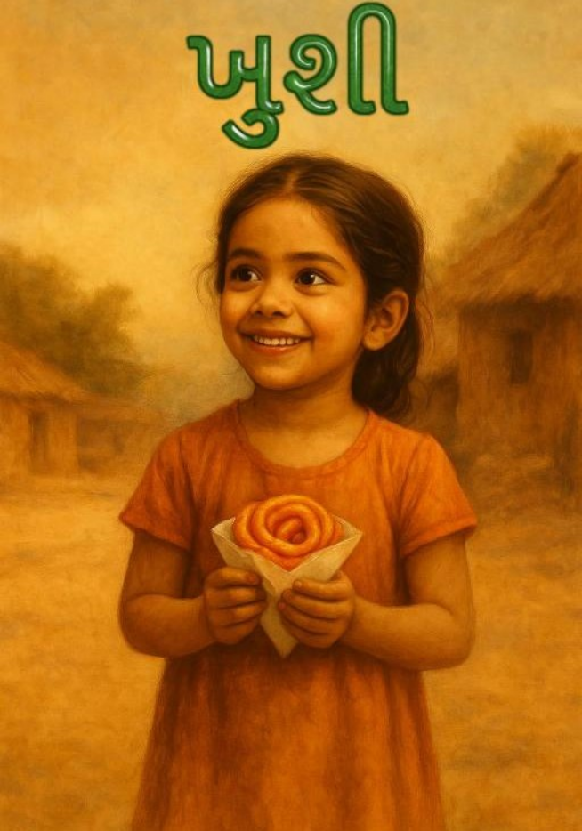 છોકરાઓના જુંડ માં “ખુશી ” ખભે દફ્તર રાખી તેના ક્લાસના વિદ્યાર્થીઓને જલેબીની લહેજત માણતા જોતી હતી, તેની પાસે જલેબીના પૈસા નહતા અને જલેબી ખાઈ રહેલાઓને ગરમાગરમ જલેબીનો રસાસ્વાદ માણતા જોઈ ને વાલી વર્ગ પ્રસન્ન થતો હતો..