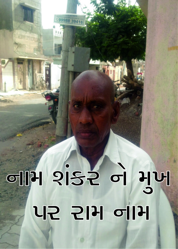 અહીં તસ્વીરમાં નજરે પડતા શંકરભાઇના મોઢામાં ચોવીસેય કલાક રામનું નામ રમતુ રહે છે. રાજકોટના ગાંધીગ્રામ, જીવંતીકાનગર ૧/૪ના ખુણે ગૌશાળાની સામે જ નિવાસ સ્થાન ધરાવતા શંકરભાઇ ઇરીગેશન ખાતાના નિવૃત કર્મચારી છે.