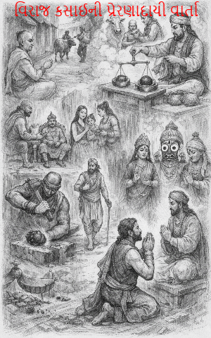પણ રાત્રે સ્વપ્નમાં ભગવાન પ્રગટ થયા અને કહ્યું: “જ્યાંથી લાવ્યા છે ત્યાં જ મને પાછા મૂકી આવો. મારા ભક્ત વિરાજની ભક્તિમાં જે રસ છે તે તમારા આડંબરમાં નથી.” બ્રાહ્મણે વાંધો ઉઠાવ્યો: “પ્રભુ, વિરાજ તો પાપી કસાઈ છે, માંસની દુકાનમાં તમારો ઉપયોગ કરે છે!” ભગવાને હસીને કહ્યું: “વિરાજ મને તરાજુમાં મૂકીને તોલે છે ત્યારે મને લાગે છે કે તે મને ઝૂલાવે છે. તેના ભજનથી દુકાને આવનારાઓને પણ મારું નામ સ્મરણ થાય છે. અહીં તો શાંતિ છે, પણ ત્યાં જે આનંદ મળે છે તે અહીં નથી. મને પાછા તેની પાસે મૂકી આવો.”