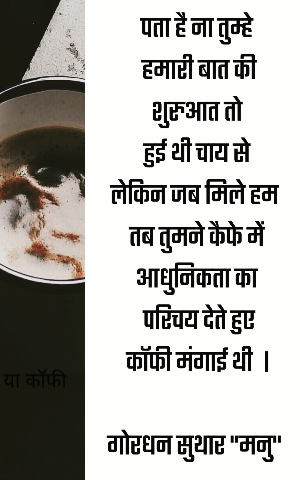 चलो हम-तुम फिर बैठ के सुबह की चाय एक साथ पीते हैं। चलो हम-तुम फिर बैठ के सुबह की चाय एक साथ पीते हैं।