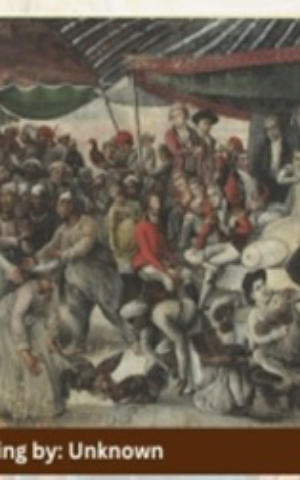 दो मुर्ग़ों की लड़ाई के माहौल का सजीव चित्रण है।
