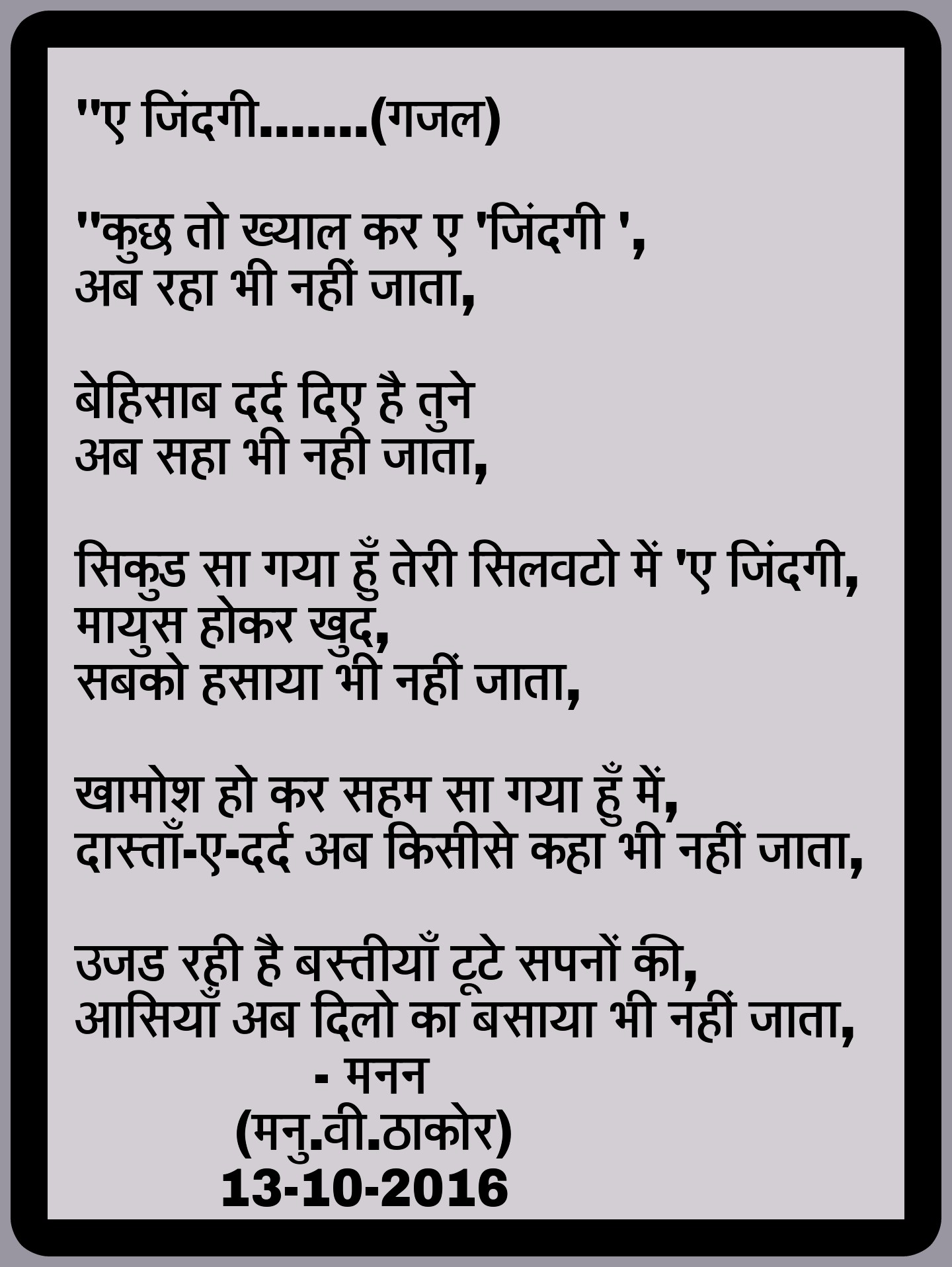 कुछ तो ख्याल कर ए ज़िन्दगी