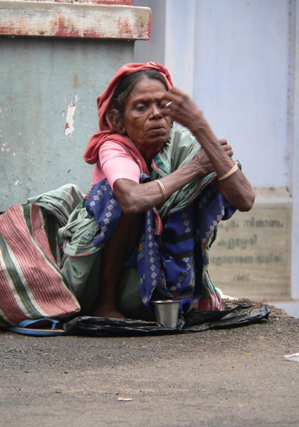 फ़टे लिबास में व्यापारी का दरवाजा खटखटाकर