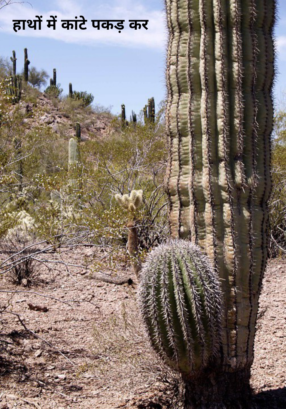 हाथों में कांटे पकड़ कर।