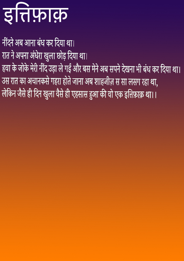 वैसे ही एहसास हुआ कि वो एक इत्तिफ़ाक़ था।।