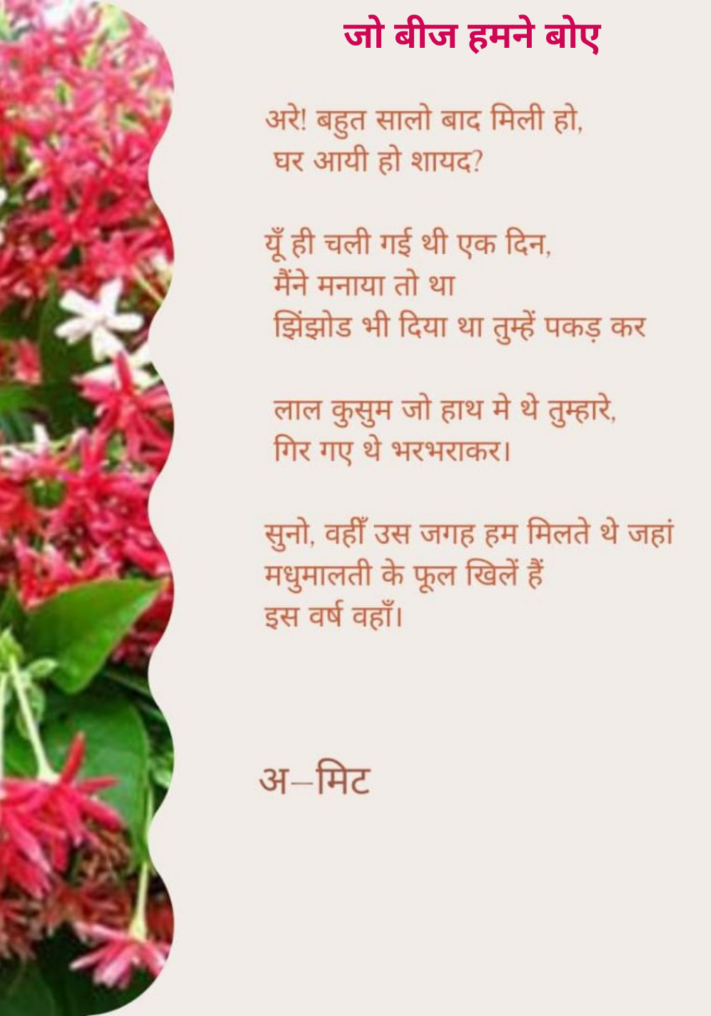 जहां मधुमालती के फूल खिलें हैं इस वर्ष वहाँ।