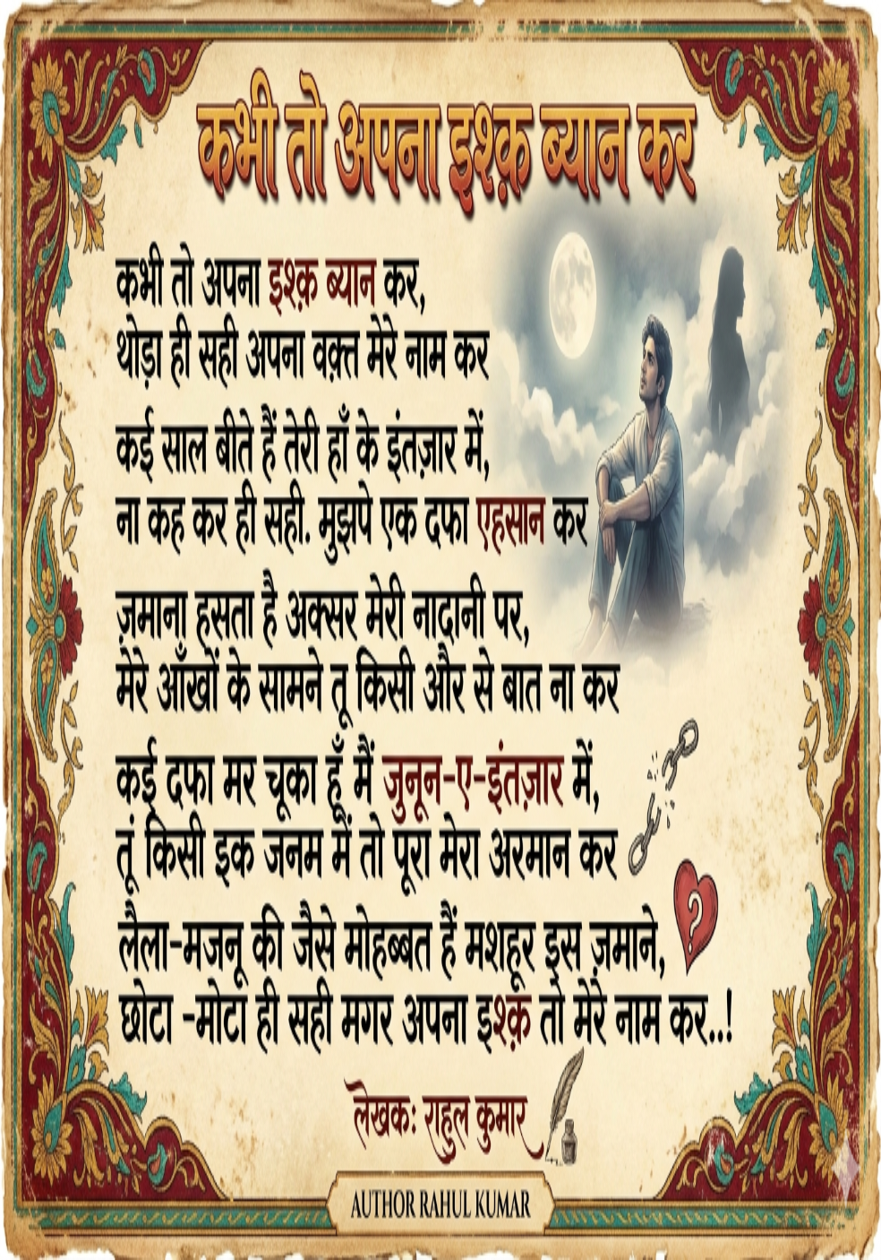 कभी तो अपना इश्क़ बयान कर प्रेम कविता राहुल कुमार
