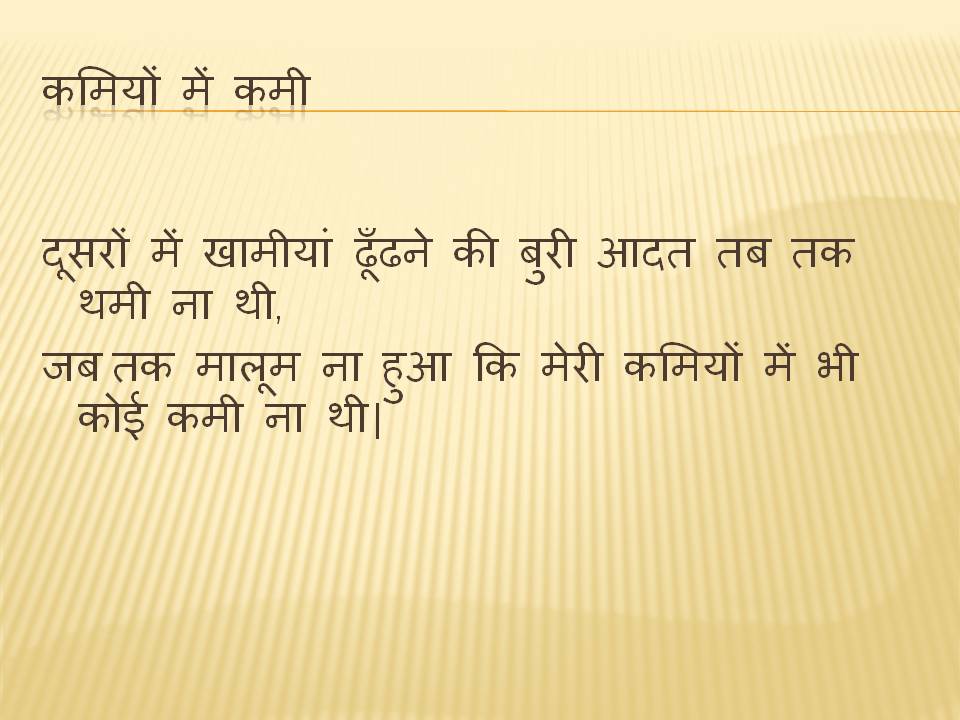 जबतक मालूम ना हुआ कि मेरी कमियों में भी कोई कमी ना थी।