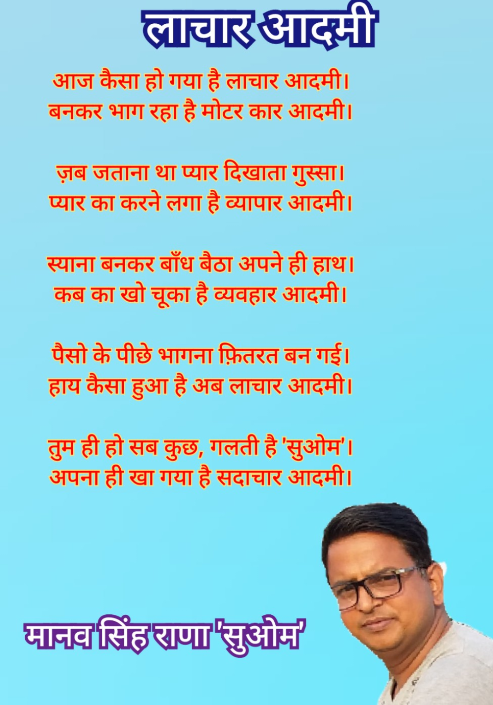 आज कैसा हो गया है लाचार आदमी।