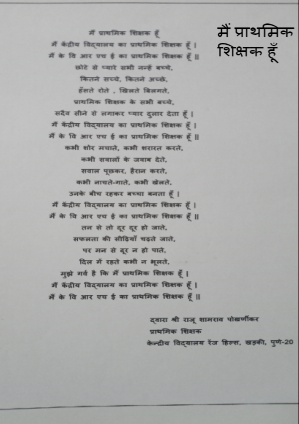 मैं केन्द्रीय विद्यालय का प्राथमिक शिक्षक हूँ,