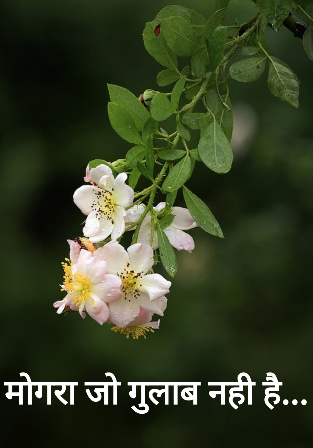 मारे कॉम्प्लेक्स से मोगरा और ज़्यादा सफ़ेद होकर उन खूबसूरत गुलाबों के बीच छुपने लगा