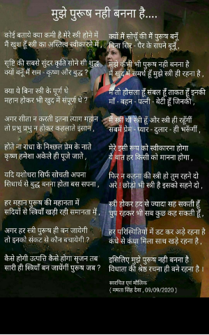 क्यों मैं सोचूँ की मैं पुरूष बनूँ