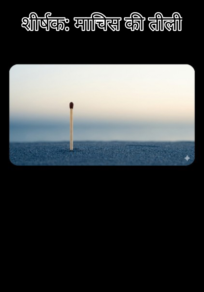 शीर्षक: माचिस की तीली एक छोटी सी डिब्बी में, सौ अरमान सोए हैं, नन्हीं-नन्हीं लकड़ियों में, कई तूफान सोए हैं। कीमत इसकी चंद पैसे, पर काम बड़ा कर जाती है, एक रगड़ से सोई हुई, ज्वाला को जगाती है। डिब्बी कहती तीली से— "संभल कर तू बाहर आना", बिना लक्ष्य के कभी भी, अपना वजूद मत जलाना। शक्ति तो है तेरे भीतर, पर संयम भी ज़रूरी है, बिना रगड़ के आग यहाँ, सदा रहती अधूरी है। ये तीली हमें सिखाती है, कि शांत रहना बेहतर है, पर वक़्त पड़े तो दुनिया को, अपनी ताकत दिखाना बेहतर है। खुद जलकर जो औरों का, चूल्हा और चिराग जलाए, वही छोटी सी तीली, असल में महान कहलाए। एक छोटी सी सीख (कहानी का सार): माचिस की तीली का स्वभाव इंसान जैसा होना चाहिए। जैसे तीली अपनी शक्ति को डिब्बी के अंदर सुरक्षित रखती है और केवल ज़रुरत पड़ने पर ही जलती है, वैसे ही इंसान को अपनी ऊर्जा और क्रोध को फालतू बातों में नहीं जलाना चाहिए। जब सही मौका (लक्ष्य) आए, तभी अपनी प्रतिभा की आग जलानी चाहिए।