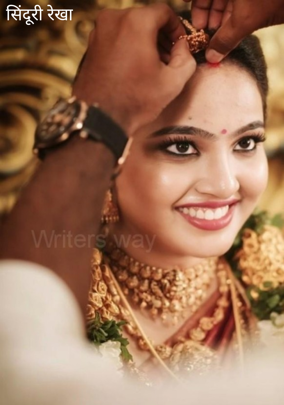 माँग लाल सिंदूरी आभा से सजती है