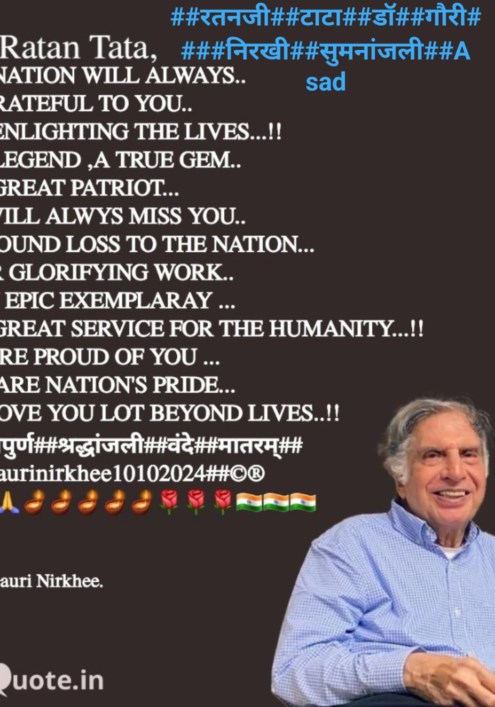 रतनजी टाटा हमेंशा अपने सत्कार्यों सें याद रहेंगे ...!!