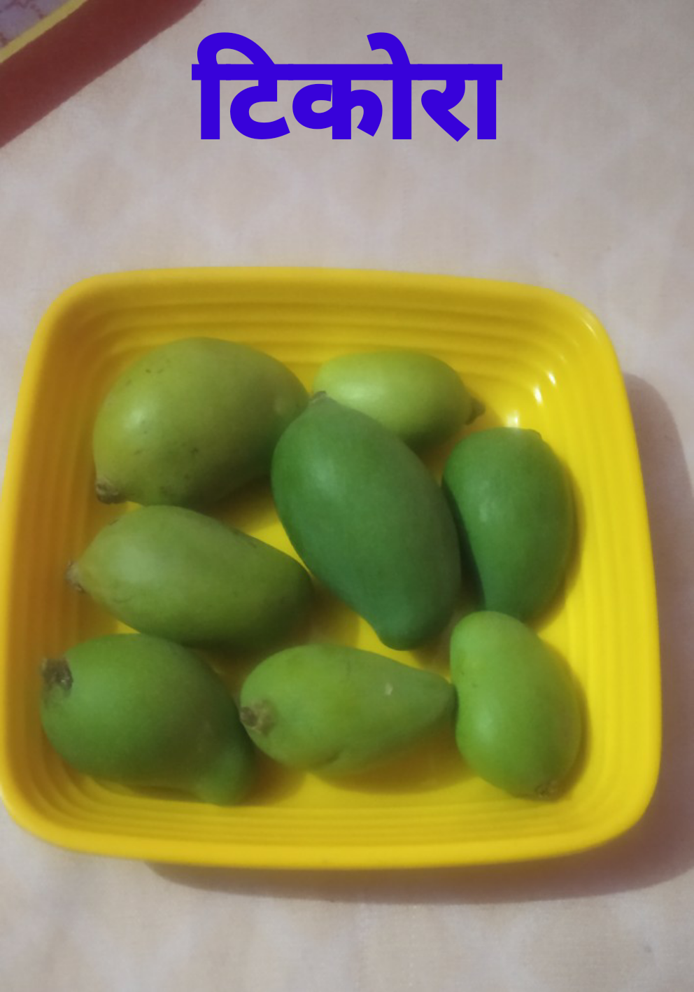 अपने नन्हे-नन्हे हाथों से टिकोरा खूब बटोरा।