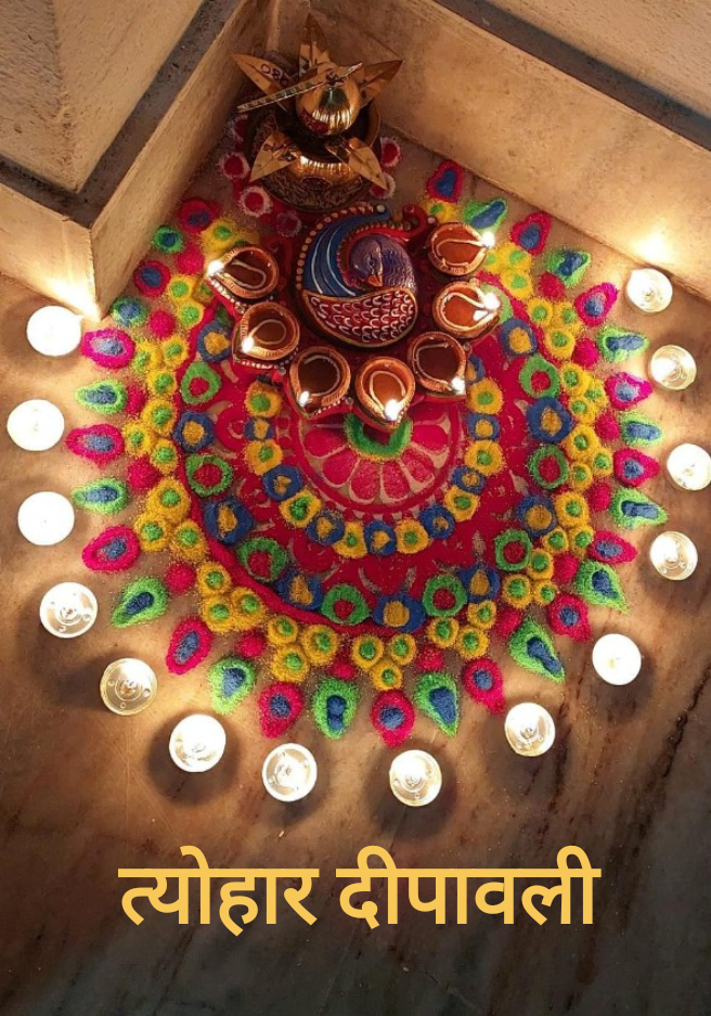 रंग बिरंगी डिजाइन रंगोली, कैंडिल भरी दुकानें,