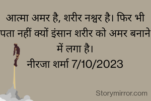 आत्मा अमर है, शरीर नश्वर है। फिर भी पता नहीं क्यों इंसान शरीर को अमर बनाने में लगा है। नीरजा शर्मा 7/10/2023