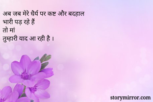 अब जब मेरे धैर्य पर कष्ट और बदहाल भारी पड़ रहे हैं तो मां तुम्हारी याद आ रही है ।