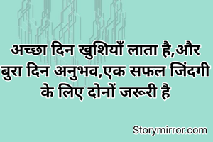 अच्छा दिन खुशियाँ लाता है,और बुरा दिन अनुभव,एक सफल जिंदगी के लिए दोनों जरूरी है