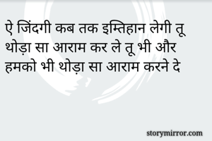 ऐ जिंदगी कब तक इम्तिहान लेगी तू थोड़ा सा आराम कर ले तू भी और हमको भी थोड़ा सा आराम करने दे