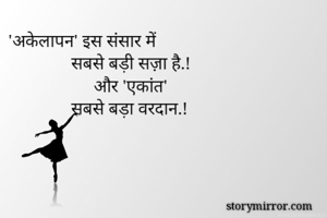 'अकेलापन' इस संसार में सबसे बड़ी सज़ा है.! और 'एकांत' सबसे बड़ा वरदान.!