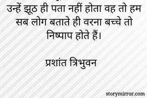 बच्चे कभी झूठ नहीं बोलते क्योंकि उन्हें झूठ ही पता नहीं होता वह तो हम सब लोग बताते ही वरना बच्चे तो निष्पाप होते हैं।