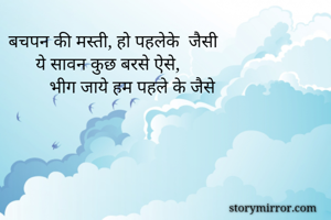 बचपन की मस्ती, हो पहलेके जैसी ये सावन कुछ बरसे ऐसे, भीग जाये हम पहले के जैसे