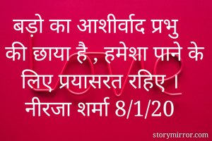 बड़ो का आशीर्वाद प्रभु की छाया है , हमेशा पाने के लिए प्रयासरत रहिए । नीरजा शर्मा 8/1/20