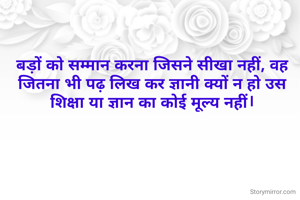 बड़ों को सम्मान करना जिसने सीखा नहीं, वह जितना भी पढ़ लिख कर ज्ञानी क्यों न हो उस शिक्षा या ज्ञान का कोई मूल्य नहीं।