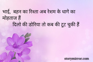 भाई, बहन का रिश्ता अब रेशम के धागे का मोहताज हैं दिलो की डोरिया तो कब की टूट चुकी हैं