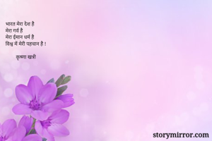 भारत मेरा देश है मेरा गर्व है मेरा ईमान धर्म है विश्व में मेरी पहचान है ! कृष्णा खत्री