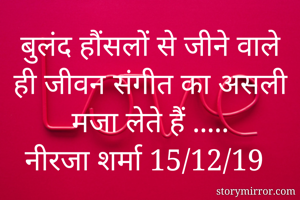 बुलंद हौंसलों से जीने वाले ही जीवन संगीत का असली मजा लेते हैं ..... नीरजा शर्मा 15/12/19