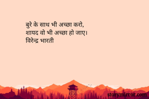 बुरे के साथ भी अच्छा करो, शायद वो भी अच्छा हो जाए। विरेन्द्र भारती