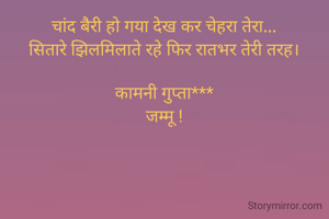 चांद बैरी हो गया देख कर चेहरा तेरा... सितारे झिलमिलाते रहे फिर रातभर तेरी तरह। कामनी गुप्ता*** जम्मू !
