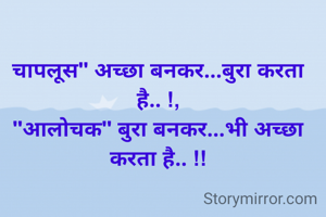 चापलूस" अच्छा बनकर...बुरा करता है.. !, "आलोचक" बुरा बनकर...भी अच्छा करता है.. !!